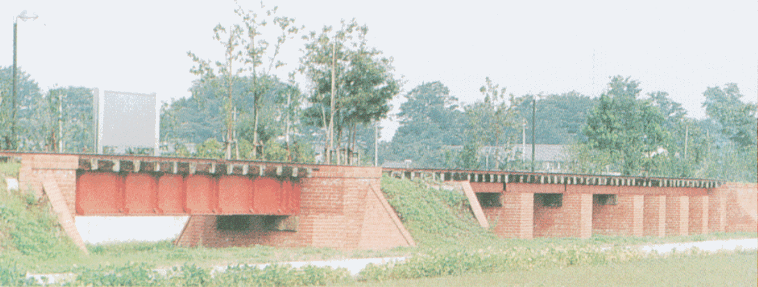 我が国最古の民間企業専用鉄道とガーター橋 レンガを深谷駅まで運ぶために明治28年専用鉄道を設置しましたが、これは我が国の民間企業の専用鉄道としては最初のものです。 また、専用線が市内福川にかかるところには鉄橋がありましたがこれは、ポーナル型プレートガーター橋とボックスガーター橋で、明 治中期に広く採用された鉄橋のモデルとなったものであり、創設当時そのままの形で現存していました。(現在は近くに移設されてい ます) |