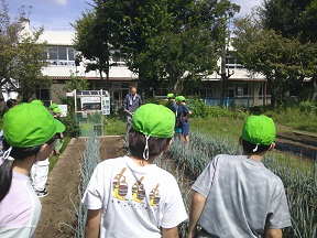 今日は、5年生が育てている深小ネギの土寄せに、本校元校長先生の篠崎先生に来校していただき、土寄せの様子を実際に見せていただきました。「どうして、土寄せをするのか」や「水やりは行うのか」など、子供たちが真剣にネギを育てようとしている姿がありました。