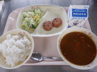 きょうの献立は、チキンカレーライス・白ごまつくね・