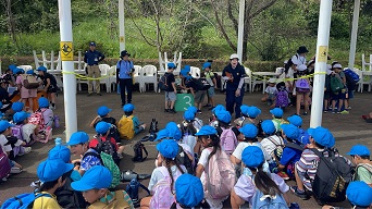 消防署では、建物について話を聞いたり、実際に防火服に着替えるところを見たり、初めて見るものにとてもワクワクしている様子でした。
