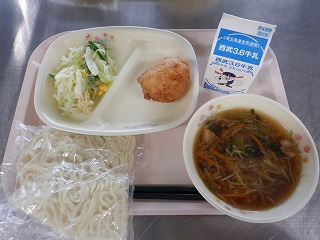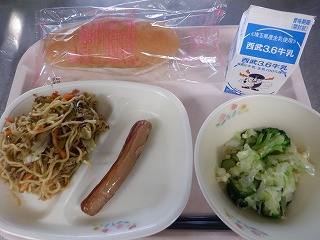 きょうの献立は、コッペパン・深谷カレー焼きそば・焼き