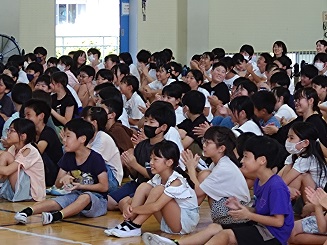 今日は、深谷中学校の吹奏楽部のみなさんが、4~6年生にむけて、演奏会を開いてくださいました。