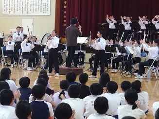 また、指揮者体験では、456年から各1名ずつ体験させていただき、4年生の児童は、終わった後も「手がまだ震えているよ~」と体験は実践するだけでなく、心にも印象付けたようです。私たちも、卒業生が活躍している姿を見ることができ、大変うれしいひと時でした。