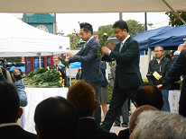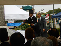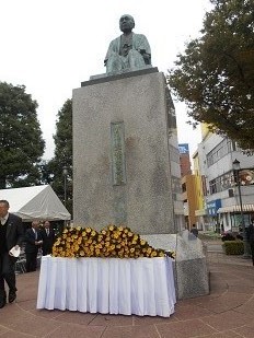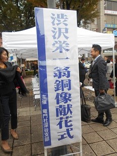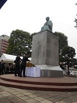 本日、深谷駅前の渋沢栄一翁の銅像の前で、「渋沢栄一翁 銅像献花式」がありました。小島市長様をはじめ、多くの方が集まりました。