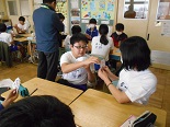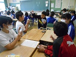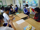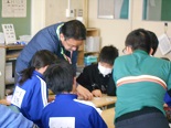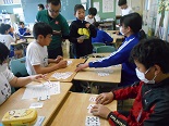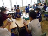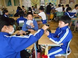 初めに、クイズ形式で興味のある問題をみんなで考え、続いて、トランプを使って正の数、負の数の勉強をしました。6年生との会食の中では、「算数が嫌い」という子もいるのですが、授業の中ではみんな笑顔一杯でとても楽しそうでした。これで、中学校の数学が楽しみになった子もいるかもしれません。大変お世話になりました。ありがとうございました。