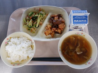 体ポカポカサラダ・沢煮椀・牛乳です。