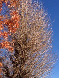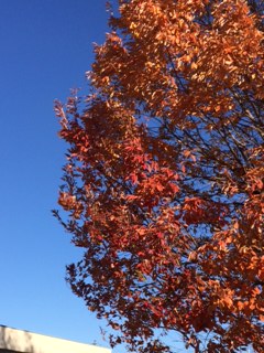 青空は広がり、明るい太陽の光も差しているのに・・・、室内にいても「ヒュー」「ゴォー」という音が響いてくるほど強い風のため、体感気温はかなり低いようです。木枯らしの襲来に、城址のケヤキも校庭のイチョウも、すっかり葉は吹き飛ばされ大きな箒のようになってしまいました。