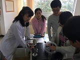 6年生が理科の時間に、理科支援員さんの柳先生と一緒に風力発電について考えました。