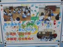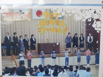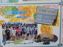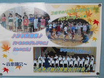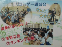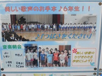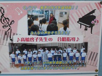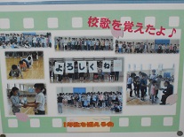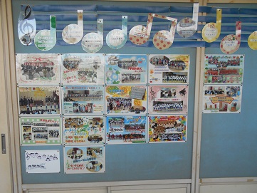 音楽室の廊下には、今年度の音楽に関係する行事等の写真が掲示されています。1階の職員室・校長室を過ぎて、一番西側の所にありますので、ご覧ください。