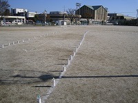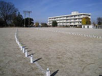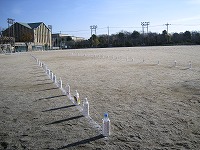 先生も校務員さんも、朝から落ち葉掃きをしラインを引き、子供たちと一緒に応援ペットボトルを設置しました絵文字:ハート