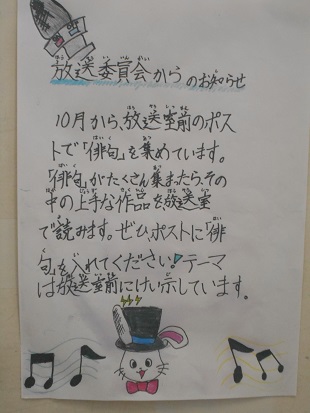 しかし、あまり俳句が集まっていないようです。放送委員会の子のせっかくのアイディアを大切にしたいと思います。