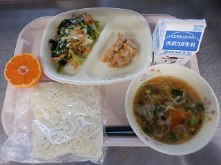 ごまみそラーメン・揚げぎょうざ・海藻サラダ・みかん・