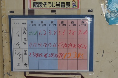 今日(1月6日)から分担したところをきれいにしてくれていたようです。私は、正門のところで挨拶をして子供たちを迎えていたので分からなかったのですが、その後、校舎内を回っていて階段のきれいなことがうれしくなりました。