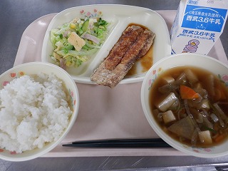 今日の献立は、ごはん・さんまのかば焼き・お揚げのサラダ・