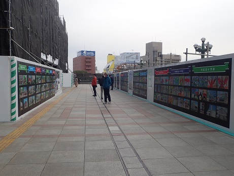 現在深谷駅では「外壁・屋根防水修繕工事」を行っておりますが、工事に伴う仮囲いを活用し、次のとおり市内小中学生の絵画作品を展示しています。