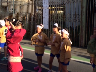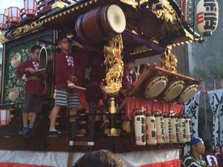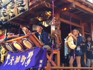 前日深谷小学校の前を通った山車で太鼓や鐘をたたいていた子供たちが、地域の方々にいろいろと教えていただき、支えていただきながら、一緒にお祭りの中で輝いていました