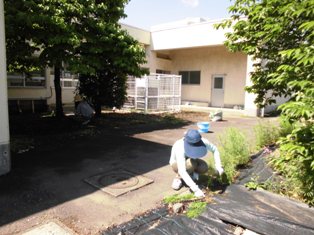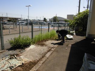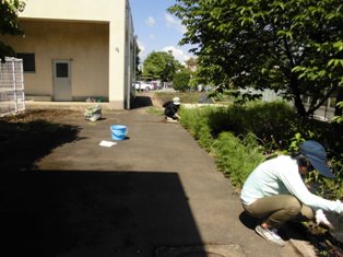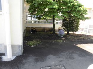5歳児男児の保護者の方が、園舎裏の除草をしてくださいました。