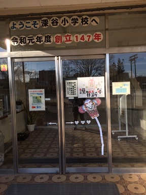 学校の玄関を元日に次のように飾りました。