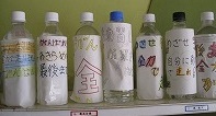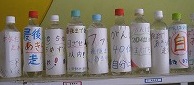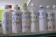 子供たちが自分自身あるいは友達への応援メッセージを記したペットボトルを作成し、明日はコースに並べられます。