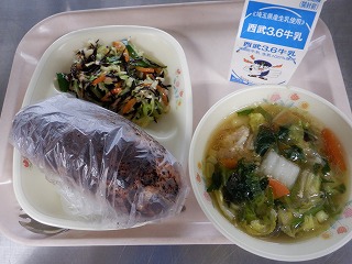体ポカポカサラダ・沢煮椀・牛乳です。