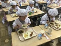 本校の給食は、とってもおいしいので、きっと、給食が待ち遠しくなると思います。ただし、嫌いなもの、食べられない物がある子もいると思います。少しずつ克服して、好き嫌いなく食べられる子になってほしいと思います。