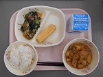 今日の給食は、ごはん・牛乳・肉じゃが・厚焼きたまご・海藻サラダです。