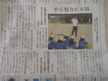 1月30日(水)に6年生が高野 進先生に教えていただいた「かけっこ教室」。その様子が、2月3日(日)の埼玉新聞に掲載されました。