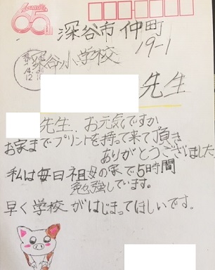 本日、担任へのはがきが届いていました。