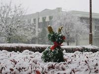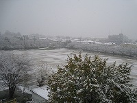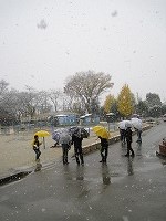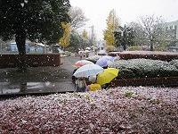 11月24日は、雪の中での登校となりました。深谷市の周辺で11月に初雪が降るのは14年ぶりなのだそうです。気温も低く、真冬でもなかなかないような寒さだそうです。イチョウやドウダンツツジの紅葉と雪の共演という滅多に見られない景色の中、