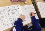 8時15分から基礎タイムが始まりました。朝は、校庭でサッカーや縄跳び、鉄棒等をしながら子供たちの元気な声が聞こえていましたが、8時15分前には、静かになり、学校全体で学力向上への15分間がスタートしました。