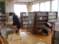 本日も、図書室で図書館司書と一緒に、ボランティアさんが本の整理をして下さっていました。ありがとうございます。