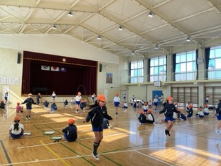 児童同士で「〇〇さん、がんばれ‼︎」など、友達を応援する姿も多く見られました。温かい声援が体育館中に響いた素晴らしいなわとび大会でした。