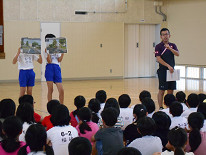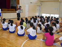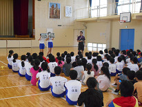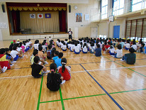 先週末、保護者の方から、子供たちの登下校の仕方について危険なところがあることを教えていただきました。そこで、今朝、関係する子供たちを体育館に集め、安全主任から話をしました。