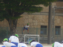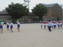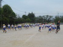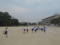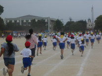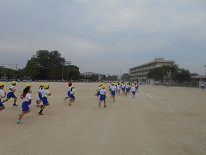 金曜日なので、今日は「すくすくタイム」がありました。一週間に1回、子供たちが一斉に校庭を走ります。職員も子供たちを励ましながら走ります。
