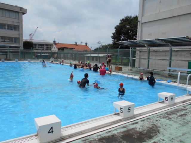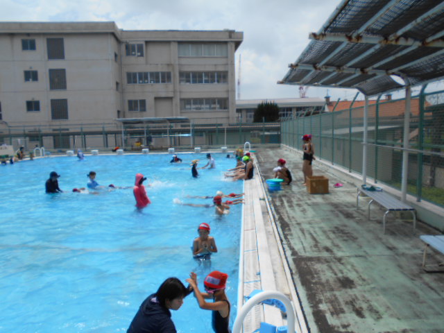 本日、水泳教室が行われました。朝は曇りでしたが、水泳教室の時間には、久しぶりに太陽が顔を出してくれました。