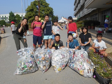 ボランティア委員会の子供たちが朝から仕事を一生懸命してくれ、集まった重さを量ったら何と18㎏ありました。とてもありがたかったです。