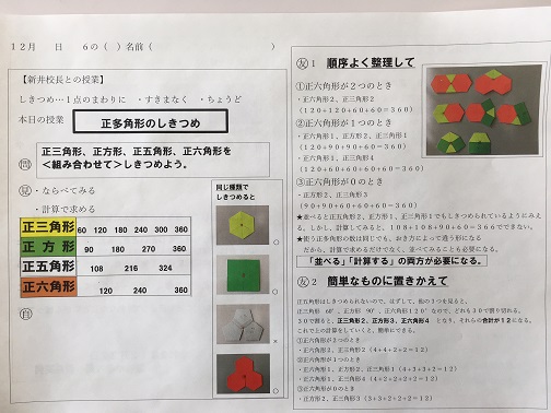 教科書に掲載されていない『正多角形の敷き詰め』の授業でした。