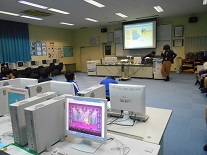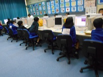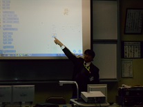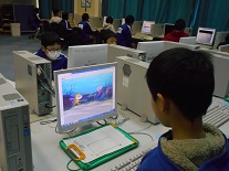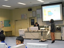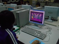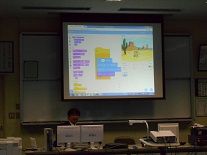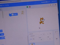子供たちが自分で命令をすると、その通りにキャラクターが動くというものでした。跳ね返ってくるようにしたり、逆さまにならないようにしたり、背景を変えたり、・・・・。自分でこうしたらどうなるだろうかと色々考えて行っていました。