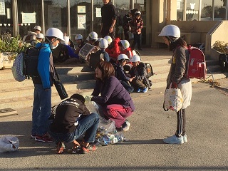 今朝もアルミ缶の入った袋を持って、多くの子が登校してきました。