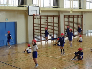 「ハイ、ハイ、ハイ」と声に出し、縄を見てリズムを取ろうとしたり、「がんばれー!」と応援したり、がんばっている子の数を数えてあげたりなど、思いやりのある行動や協力してがんばろうとする姿勢がたくさん見られました。日々の成長が感じられるなわとび大会でした。