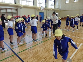 持久跳びでは2分間跳び続け、63人の児童が認定証をもらいました。(ミスは5回までセーフです。)