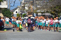 深谷西小学校を去るとき、深谷西小学校の子供たちが両側に並び見送ってくれました。親善にふさわしい温かさを感じるシーンでした。深谷西小学校の皆様、ありがとうございました。