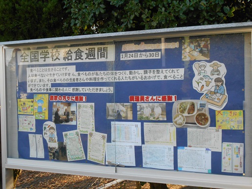 21日から正門の掲示板が給食週間のものにかわっています。