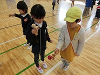 この日のために、一生懸命練習した『むかし遊び』を優しく丁寧に、園児たちに教える姿は、いつもの1年生とは少し違い、ちょっと大人びて見えました。
