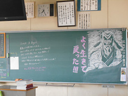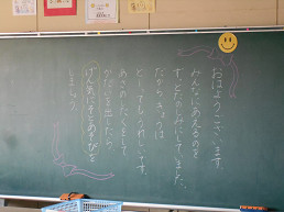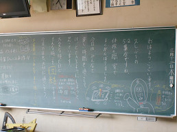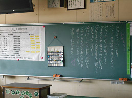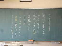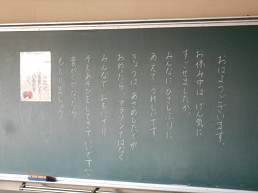 黒板には、久しぶりに会う子供たちへの言葉が並びます。