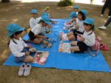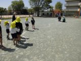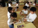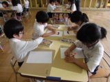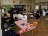 5歳児 じゃんけん陣取り遊び。離任式で山﨑先生に渡すプレゼントつくり