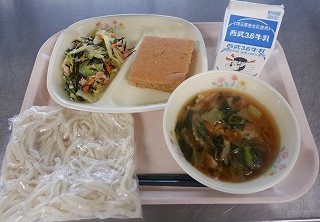 きょうの献立は、深谷ねぎたっぷりうどん・深谷レンガ