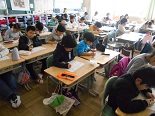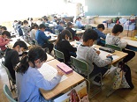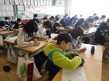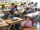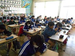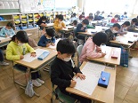 8時15分になると、廊下にいる子はいません。各教室で、学年ごとに決まっているプリントに取りかかります。全てのクラスを回りましたが、どのクラスの子もしっかり取り組んでいました。