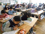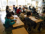 放送委員会の子が「今日は、基礎タイムがあるので教室に入って準備をしましょう」と言ってくれます。外でサッカーや縄跳びをしていた子供たちは、手洗い・うがいをしっかりしてから教室に入ります。
