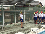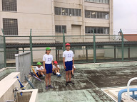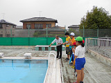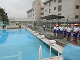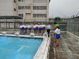 そこで、担当者のみプールサイドに集まり、事故が起こらないように儀式だけを行い、その後、放送で「プール開き」を行いました。テープカットの子供たちが活躍できなくなってしまい申し訳なかったのですが、他の子供たちは自分の役割をしっかり果たすことができました。